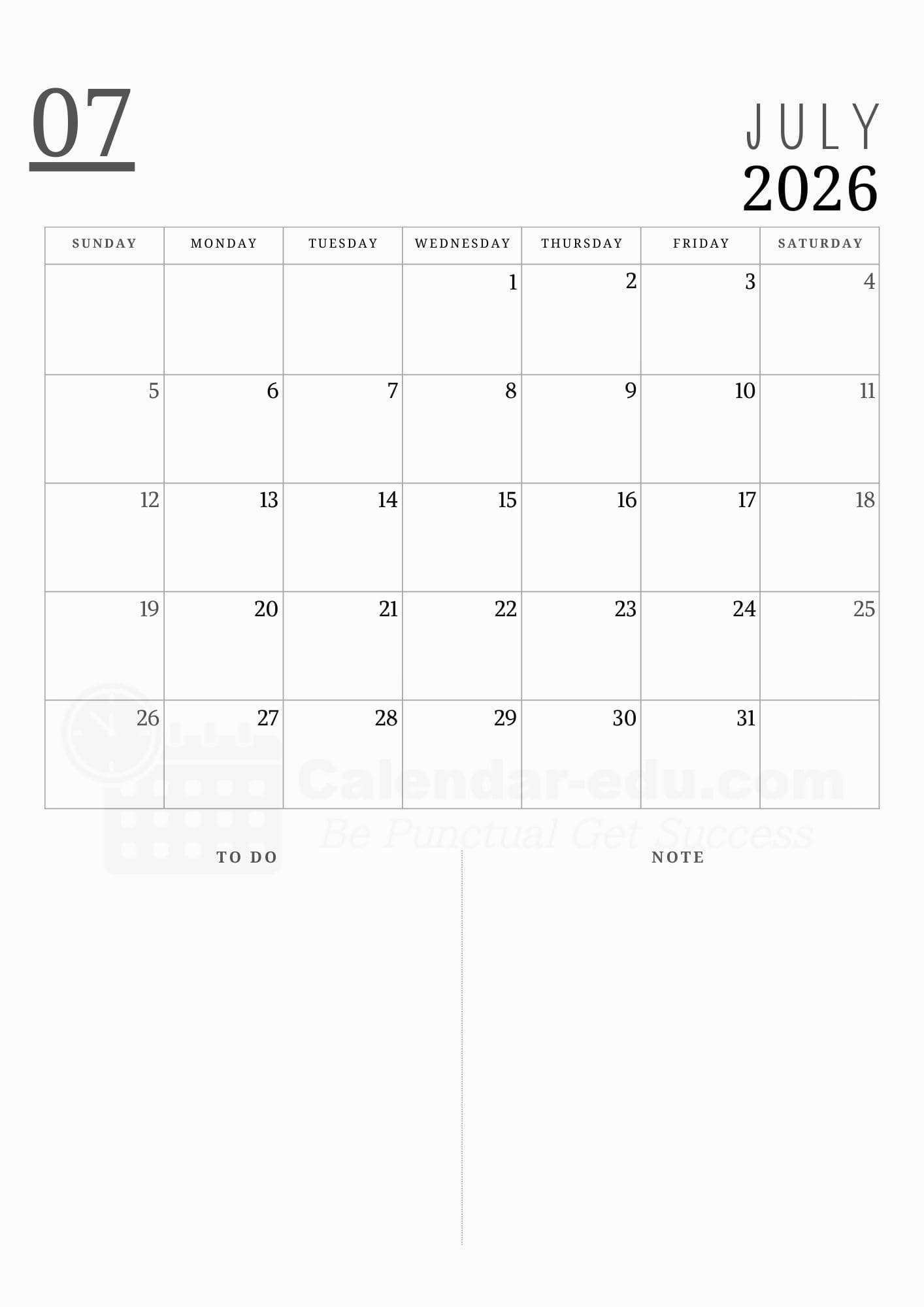 You can use the Calendar-EDU free July 2026 printable calendar template as a potent discipline tool. Print it, map out your monthly task list, meetings, and personal timetable, and affix it where you can see it constantly. This simple act of planning transforms your intentions into action.