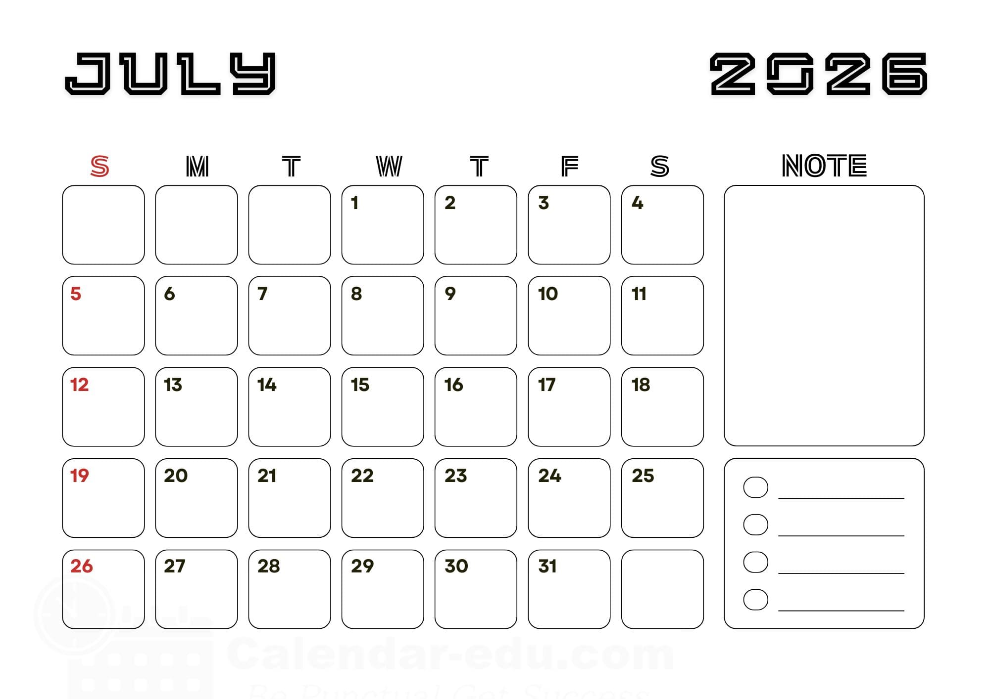 This month is packed with major events and important dates, Utilize your July 2026 calendar with holidays to plan ahead and ensure you do not miss a thing.